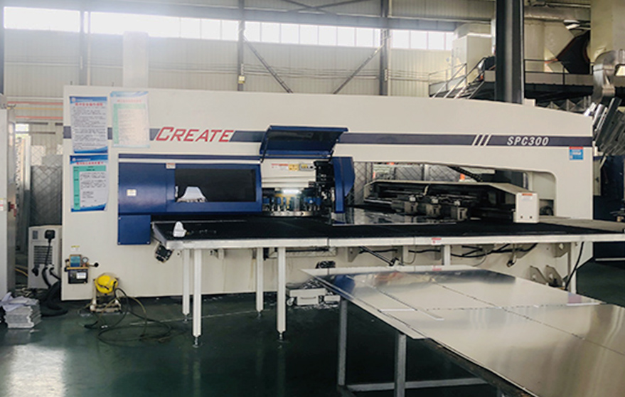 擁有現代化的生產廠房,配套完善,多工位數控沖床、6臺轉塔沖、4臺全自動激光雕刻機,全長480米的自動靜電噴涂生產線1條
